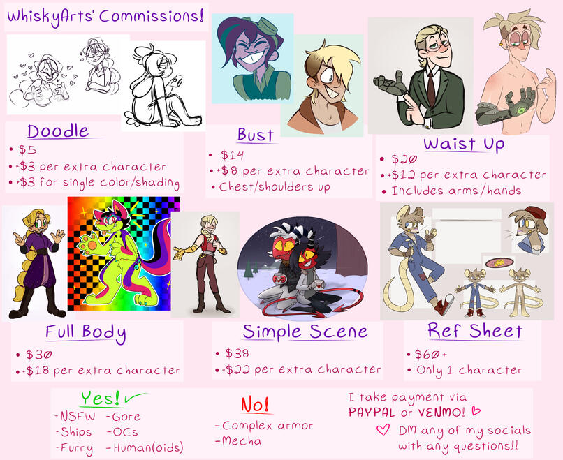 Payment for commissions will ONLY be accepted via paypal or venmo. I will NOT accept cashapp, steam items, or digital currency as forms of payment.